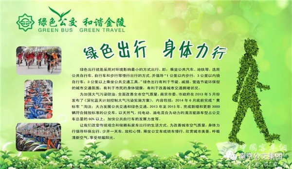 南京公交集团在江苏省交通运输厅,市委市政府,南京市交通运输局,南京市城建集团的领导下,创新思路,率先在省内推广应用新能源公交车。倡导绿色低碳交通出行,节能减排成效突出,成为南京市环保队伍中一道亮丽的移动风景线。