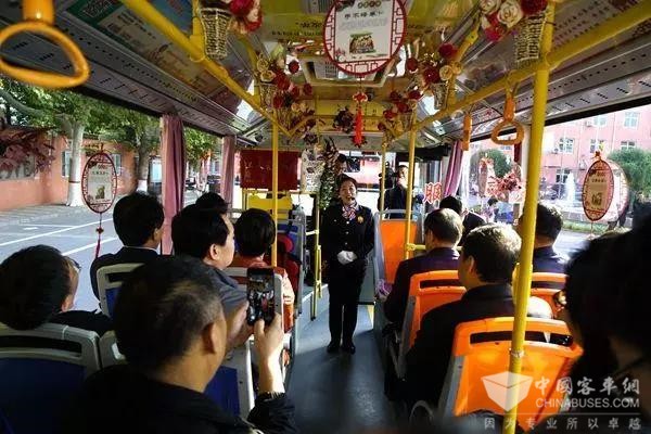 在特色车厢观摩现场,10部美观、整洁、大方的新能源公交车整齐罗列,一行人纷纷走进车厢,感受邯郸公交的特色服务:双语报站、手语舞、坐垫、宝宝座椅、哺乳专座、“测车速”的鱼缸,再加上浓浓文化气息的邯郸典故、成语等,受到大家的一致好评,在连续不断的掌声中,大家纷纷说道:“这就是小车厢、大舞台,在这样温馨的环境中,想发生矛盾都难!”