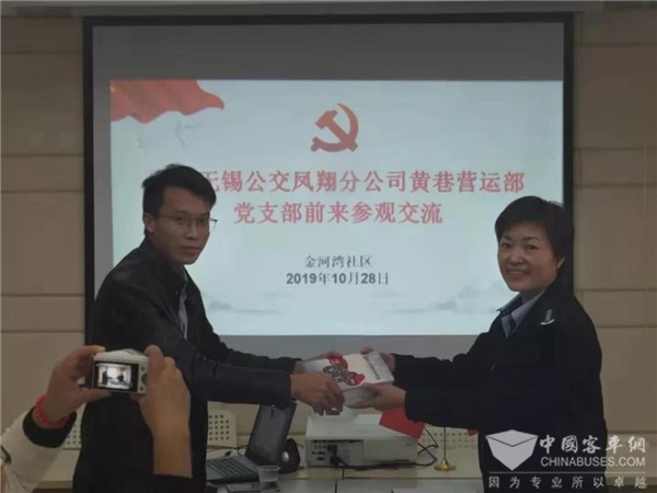 邱林峰陪同孙亦波一行就社区是如何做好服务型党组织进行了参观。随后双方就主题教育进行了交流,孙亦波向大家介绍了支部围绕主题教育所做的“十个一”工作进度和内容。同时,对途径爱家金河湾社区的17路学雷锋号的争创工作进行了交流。结束时,支部委员、纯美班组班长钱纯美代表支部向社区赠送了一批导乘图册,感谢长期以来社区给予的关心和帮助。