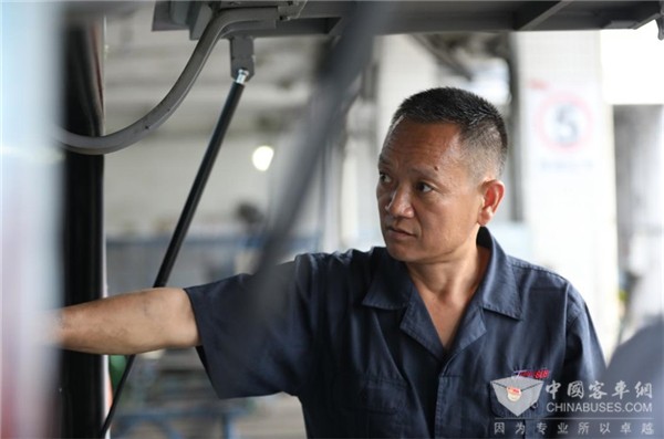 崔建立师傅1989年底参军入伍并开始学习机械维修,2000年进入广州珍宝巴士有限公司(以下简称:广州珍宝巴士)。20年来,一直从事于维修工作,积累了大量的经验。然而时代在不断进步,伴随车辆的不断更新换代,维修车辆和学习钻研维修新能源车辆贯穿了崔师傅的整个工作生涯。