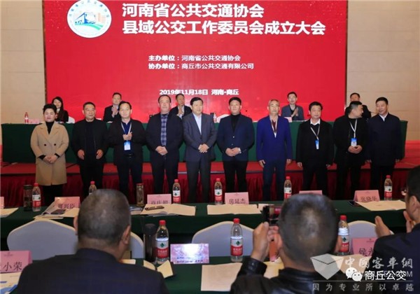 2019年11月18日——19日,由河南省公共交通协会主办、商丘市公共交通有限公司协办的河南省公共交通协会县域公交工作委员会成立大会在商丘市隆重召开。来自协会59家县域公交企业、部分公交相关配套厂商200余名代表参加会议。河南省公共交通协会副理事长,商丘市公共交通有限公司董事长、总经理黄玉波,河南省公共交通协会副理事长,漯河市公交集团党委书记、董事长、总经理王克喜,河南省公共交通协会副理事长、许昌市城市公共交通有限公司总经理陆建明,周口市公共交通总公司党总支书记杨军出席本次大会。大会由河南省公共交通协会秘书长李文主持。