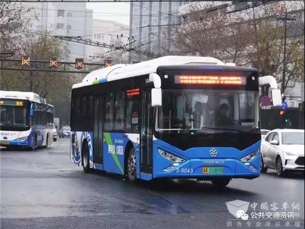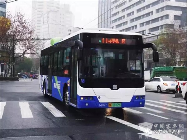 杭州马路上行驶的电动公交车