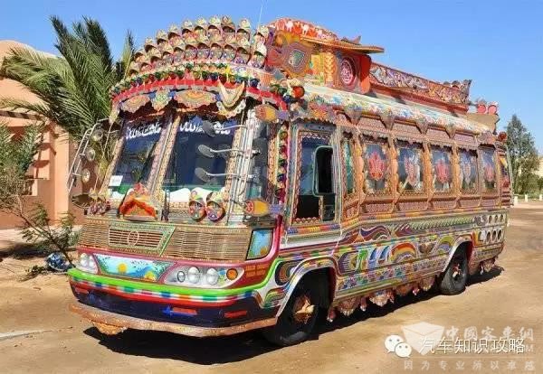 这个被打扮得花花绿绿的公交来自巴基斯坦。
