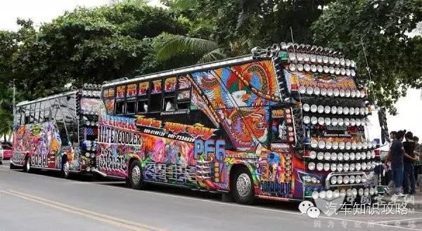 这辆泰国的公交前面装了很多灯,这是害怕迷路么?