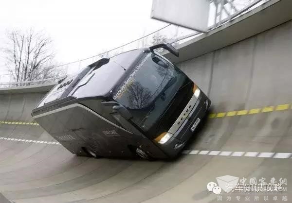 Setra观光巴士在德国Unterturkheim的戴姆勒工厂的竖向曲面上测试,坐上去会使人头晕目眩。