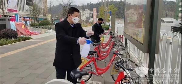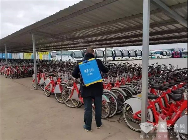 在疫情刚刚发生之时,自行车公司就成立了疫情防控工作领导小组,全力做好各项应急保障工作,要求在调运自行车前,对所有自行车及调运车辆进行仔细认真的消毒,为乘客提供安全、洁净、健康的公共用车环境。