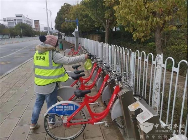 为确保“小红车”的对外运营,为市民提供应急出行工具,各个岗位的工作人员在确保自身安全健康的情况下积极投身于公共自行车的服务保障工作。