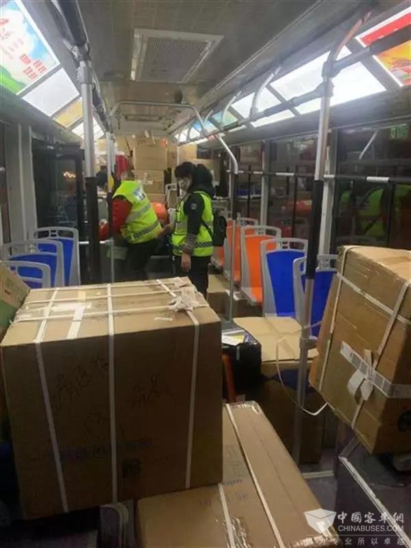 除了保障一线人员的出行,这些公交车还承担着运送医疗物资的任务。1月27日23时,武汉公交三公司549路“退伍军人先锋队”王其刚、刘培、梁健、李斌、陈为书等5名驾驶员,驾驶着5辆公交车,赶到青山武东高速收费站,运送一批抵汉的急用医疗物资。1月28日凌晨4时许,“晚点”的货车抵达收费站。5名驾驶员和7名医院工作人员协力奋战1个多小时,合力将总计470箱(件)的医疗物资全部搬送上了公交车上。1月28日7时许,医疗物资被安全送至武汉市四医院。