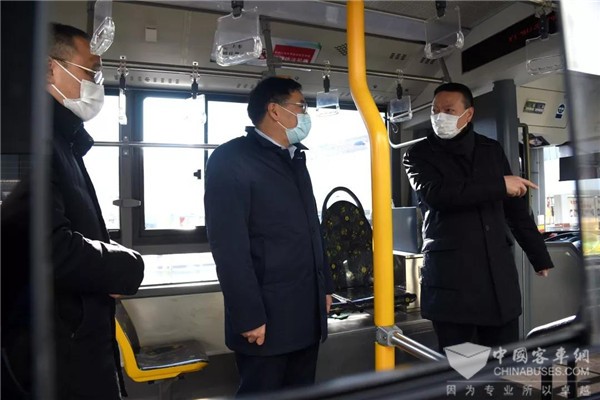 上午9时30分,副市长汤志平、市府副秘书长黄融来到南浦大桥枢纽,听取了公交防疫工作情况介绍,实地检查了枢纽站上下车乘客检测体温、公交车辆消毒及开窗通风、重点人员排查、发热乘客临时安置点设置、加强防疫宣传等应对措施落实情况,并亲切慰问了春节假期坚守岗位的公交一线干部职工。