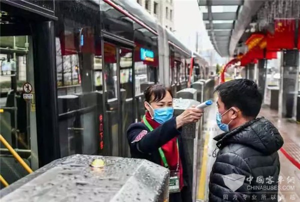 针对部分公交枢纽站进出口较多的特点,保留乘客进出主通道,在通道进出口安排保安和工作人员,对进出站乘客逐一进行红外线体温测试,遇发热乘客立刻采取登记、隔离的措施,及时安排至枢纽站临时安置点并上报市疾控中心。