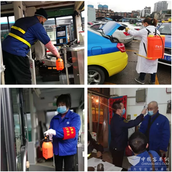 (专人负责对公交车进行消毒)