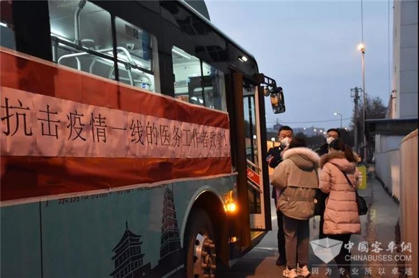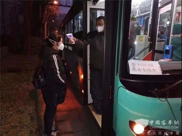 总公司提出了开通“医护专线”的举措,公交八公司积极响应,四车队王猛队长主动联系市第四人民医院,在八公司领导班子的研究部署下,于2月4日正式开通医护人员免费通勤班车。