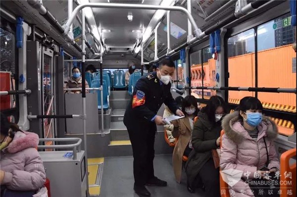 2月4日早上7点15分,由巴士公司开通的开远门地铁口至西安医学院第一附属医院及延平门地铁口至西安医学院第一附属医院两条医护人员早晚班线按时到达发车点,驾驶员乌少华和陈新文提前30分钟到岗对车厢内外进行了彻底消毒,并把车厢收拾的干净整洁。
