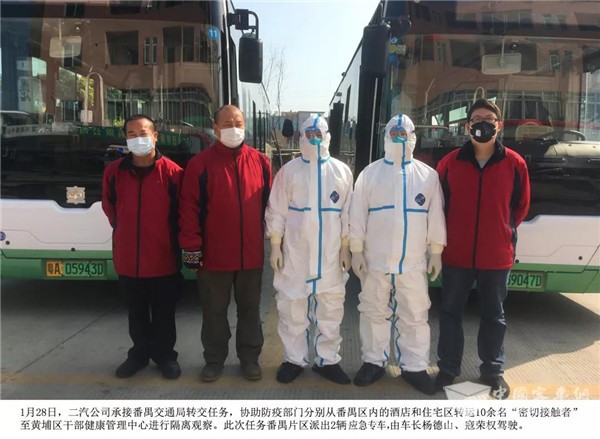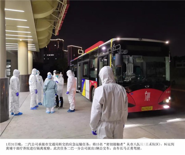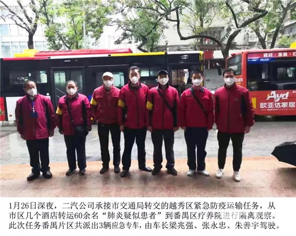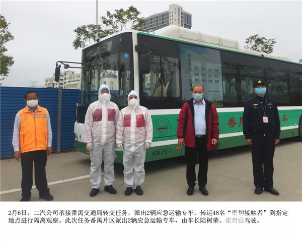 2月6日,二汽公司承接番禺交通局转交任务,派出2辆应急运输专车,转运48名“密切接触者”到指定地点进行隔离观察。