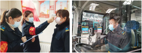 驾驶员营运前需进行体温测试,确保身体健康上岗。运行期间全程须佩戴口罩、手套,严格做好自我科学防护。