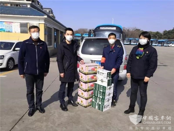 为切实关爱疫情防控一线全体员工的健康安全,在市城建集团党委的亲切关怀和大力支持下,南京公交集团党委于2020年2月12日,组织开展了“抗疫情、保平安、送温暖”走访慰问活动。这天下午,公交集团领导班子成员带领集团部室负责人,带上盒装牛奶及苹果,来到所属七家客运公司以及现代电车、公共自行车、场站、轮渡、保修公司,慰问奋战在疫情防控一线的党员干部职工,送上组织的关心关怀关爱。