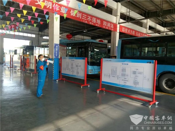 图为塘南营运部组织201路驾驶员复岗检测和安全培训。培训结束后,驾驶员们主动留下做好车辆的清洁、消毒工作。