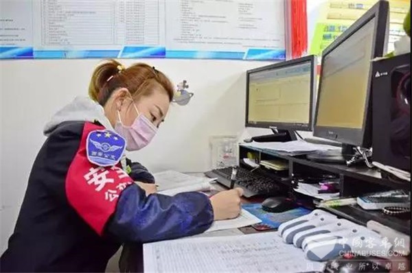 24日早,六公司调度员、驾驶员和其他工作人员带着口罩,早早来到调度站,依次接受值班队长给他们测量体温,做信息登记。随后专职消毒员对今日营运车辆逐车进行消毒。每部车除了驾驶员以外,还配1–2名工作人员,负责监督乘客带口罩,给上车的乘客测量体温,查验身份、实名登记、宣传乘车线上登记信息等。