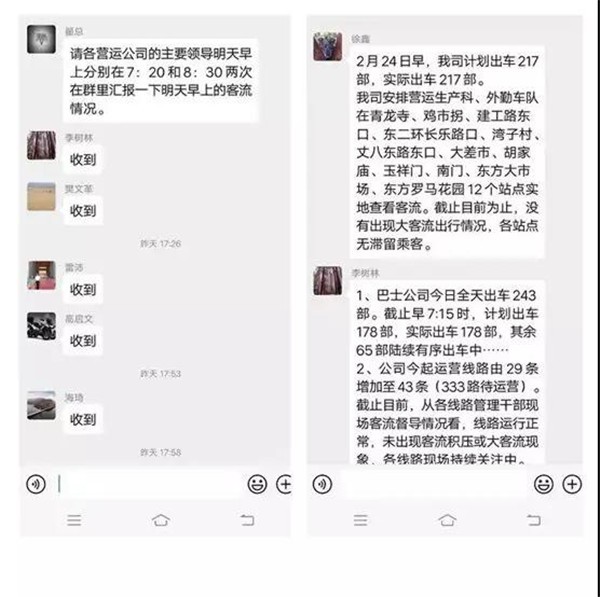 一大早,西安市公交总公司领导班子便通过智能调度系统,实时监测、掌握各大站点排班出车情况,并要求各营运单位负责人,分时段线上汇报客流情况,及时研判分析,随时调整车辆发车间隔,保障市民复工复产出行顺利。