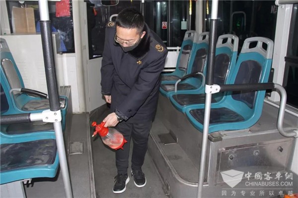 公交车虽已停运,但密集的公交车停摆在各站场。为了做好公交车的防疫,保证运行时能够达到最好的状态。公交运输集团党员突击队全天24小时对停放公交车辆进行巡查,保证所有灭火器处于完好状态,确保每一台车辆无漏电漏气现象,同时,还会做好全部车辆和场站的消毒工作。为保证车辆在寒冷的气温下能够保持性能完好,随时处于“待命”状态,党员突击队在夜间12时、3时,以及凌晨6时对公交车进行着车。面对寒冷、无休的艰辛工作,他们没有一句怨言。