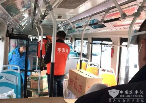 “一定要确保安全的送到目的地……”上午11点,第一台724路公交车装上满满一车鸡蛋、面条、米面粮油等物资开始发车。临发车,现场组织运力的724路线长姚洪河还不忘叮嘱司机及随车人员。接下来,这20辆公交车将载着一车车的生活物资分别前往东西湖吴家山、硚口宝丰路、江岸西马路、汉阳鹦鹉大道、洪山欢乐大道、江夏关山大道、青山钢花新村等42家“本来鲜”团购门店及重点商超配送点,为24小区隔离在家的居民提供强有力的基本生活保障。