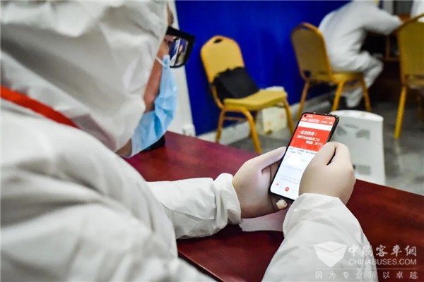 滨湖区、经开区“防疫保障专线”转运空隙,67路入党积极分子贺雷明、维修分公司党员汪峰利用碎片时间继续着《学习强国》的学习,一旁的湖滨营运部党支部书记陈宏潮时不时地出题检验两人的学习成效,24小时的待命等候似乎也没有那么的漫长。