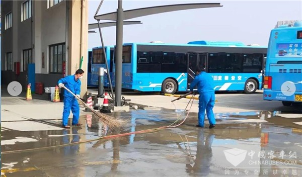 为提升作业环境,维修分公司羊北路工作站站修人员对车间外围场地进行清洗,由于羊北路停车场充电桩建设,遗留下部分建筑垃圾,车辆驶过便会扬起漫天尘土。忙碌了两个小时,整洁场地映衬下的公交蓝似乎更绚丽,蓄势待发中,迎接四方来客。