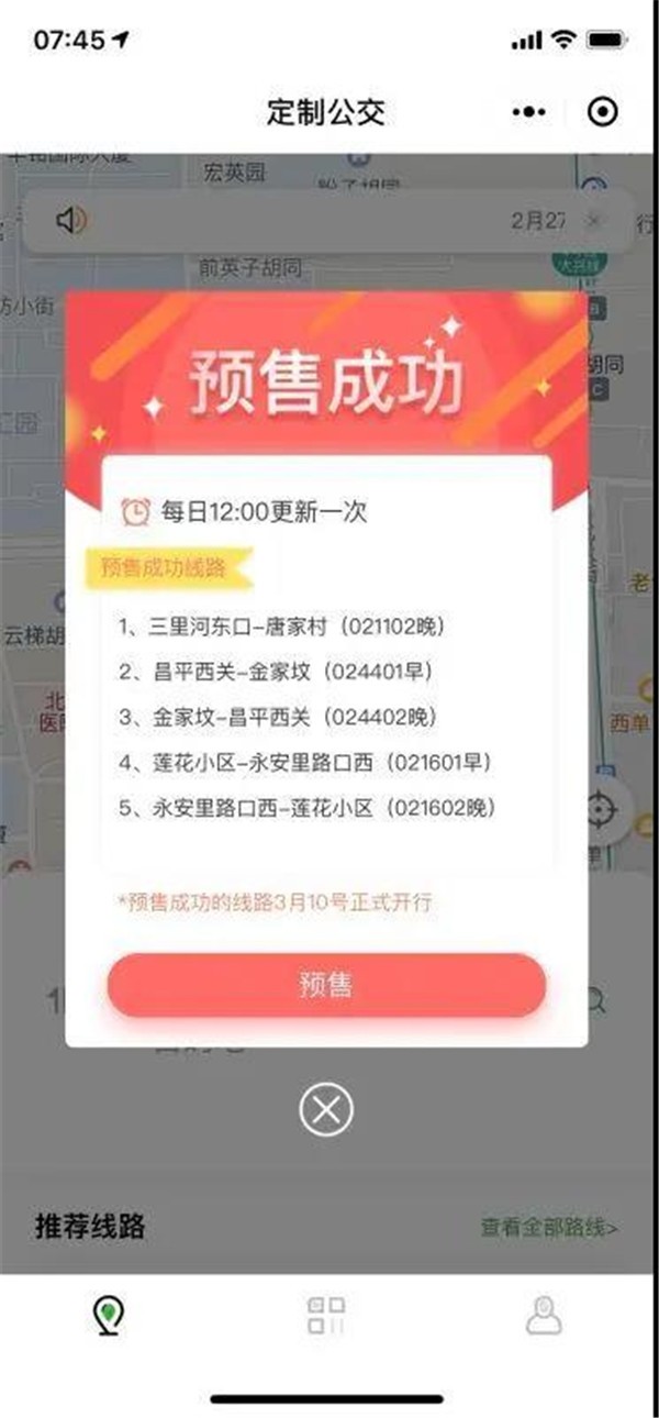 据介绍,根据区域精准线路征集需求,定制公交将通过区域自媒体公布新规划线路,同时邀请用户转发并进入微信小程序售票平台进行预售,预售达到50%上座率,即可于五个工作日内开行。线路开通后,将给与区域专属的新线路优惠活动。