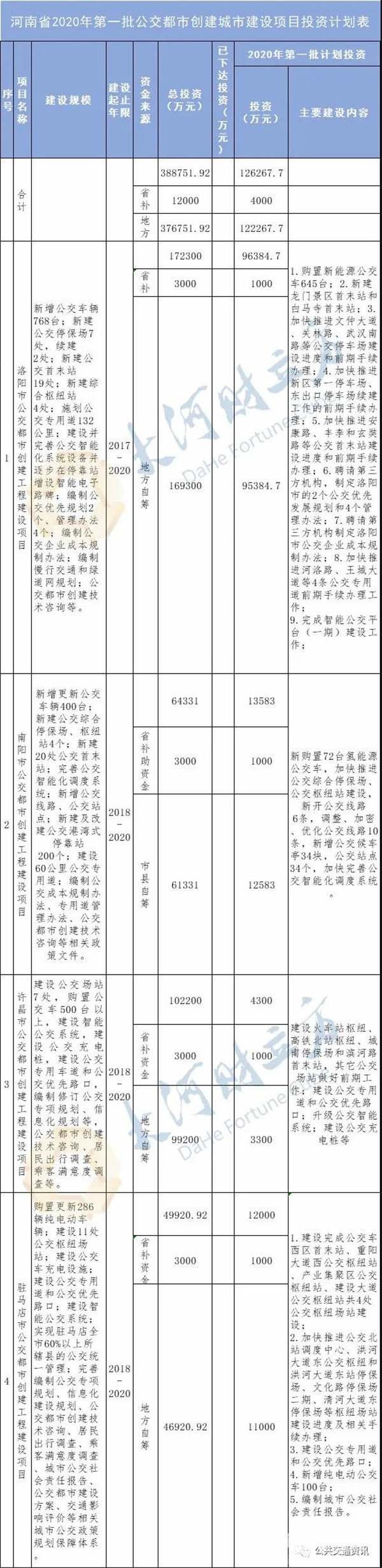 河南下达公交都市创建城市建设项目投资计划,四城市投资超22亿元