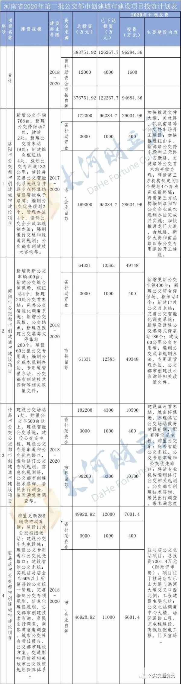 2020年3月16日,据河南省交通厅消息,日前,河南省交通厅接连发布两份通知,下达河南省2020年第一批、第二批公交都市创建城市建设项目投资计划。洛阳市、南阳市、许昌市、驻马店市公交都市创建城市建设项目获投资超22亿元。