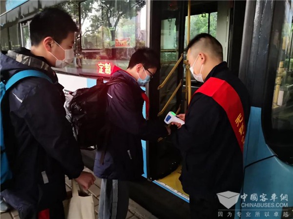 4月7日,麦德龙营运部组织党员、青年驾驶员一起走进外国语中学定制专线车厢,为学生测体温,引导学生有序上车、分区域入座,并向学生宣传文明乘车和新冠病肺炎疫情防控知识。