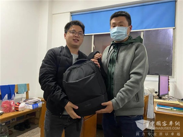 营运部管理人员通过包内电话联系到失主,并告知包已帮您保管好。当天晚上,失主乘客张先生来到盛岸营运部拿回了自己的双肩包,并连声感谢公交人的暖心服务。