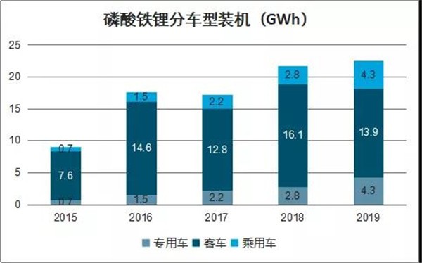 2015-2019年磷酸铁锂在不同车型上的装机示意(数据来源:智研咨询)