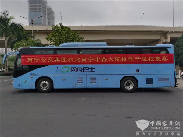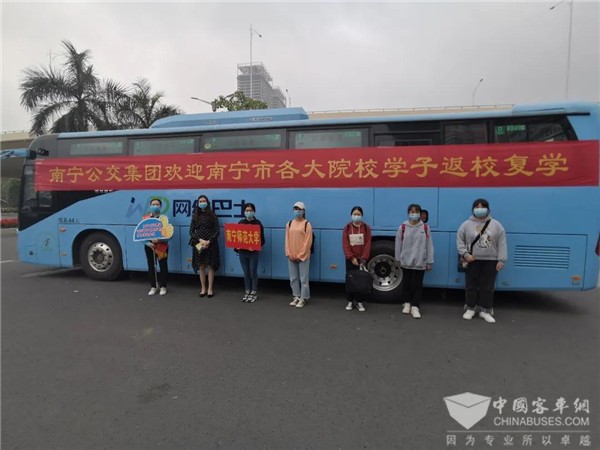 4月春暖花开,随着疫情防控取得阶段性顺利,全市各大中专院校复学工作正在有条不紊进行中。南宁公交集团为适应疫情新形式及复学要求,以“书记引航担使命”活动为抓手,践行国企担当。公司在全面恢复运力投入普通营运趟次的同时,积极对接全市各大中专院校,根据各校复学时间开行从南宁火车站、南宁火车东站、琅东客运站开往各高校园区的网约专车、定制复学专线,为返校师生提供“点对点”“一站式”的公交安全出行服务,助力全市复学,为师生安全返校护航,共筑疫情防控安全堡垒。