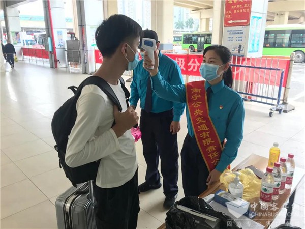 4月18日,为更好地服务南宁市第一批复课学生客流,公司采用全新的新能源纯电动巴士开通定制公交专线,精心挑选驾驶经验丰富的老司机担任驾驶员,每台车都配备了随车安全员,学生们在公司文明引导员的指引下和帮助下,消毒行李、依次排队、测量体温、有序上下车。