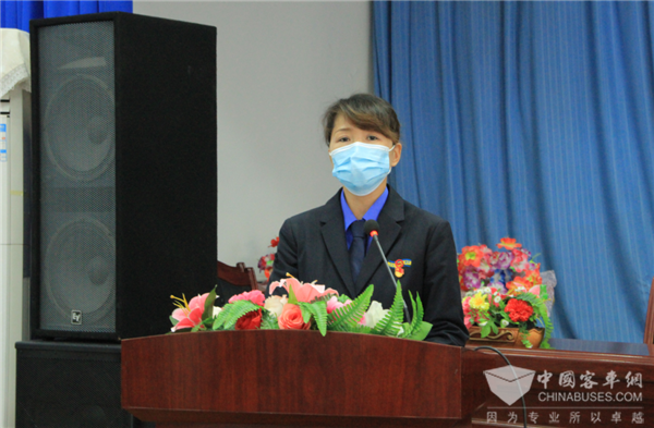 14车队驾驶员朱静深情的讲述了模范代表张月良和他的“战友”坚守在防控一线的先进事迹,精彩的宣讲迎来了台下阵阵掌声。夏丽丹·万里是第一次站在宣讲台上,她虽然讲述的是安运科长武胜一家三口一同战“疫”的故事,但仿佛也是在讲述自己的故事,作为90后的她,疫情期间她主动请缨,在特殊时代承担起了自己特殊的责任,留下了青春无悔的足迹,她说,在祖国需要的时候,自己能有机会和同事们一起战斗在防疫一线而感到自豪。