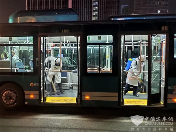 为保障市民乘客安全放心出行,济南公交坚持疫情防控机制不变、工作力度不减。切实把好车辆消毒关,继续实行“一趟一擦拭、一日一深消、一圈一通风,运行过程一律通风”的安全保障模式,规范开启空调,认真做好座椅、拉手、扶手、车窗、地板等乘客易接触部位的消毒工作。切实把好职工防护关,驾驶员运营中佩戴口罩和手套,严格执行到岗体温双测试制度。切实把好乘客防护关,日均安排630余人在全部营运线路开展乘客体温测量工作,要求乘客佩戴口罩、扫码登记乘车,全力打造市民放心出行的“免疫车厢”。