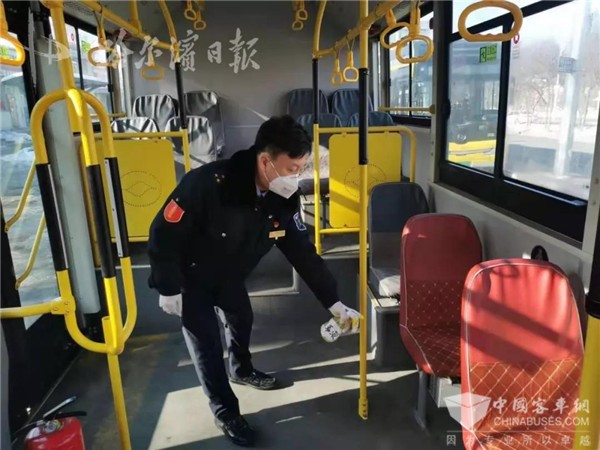 为了更好地做好车厢内的消毒通风工作,哈交通集团要求运营公交在之前“三同时、一到位、五分钟”(即喷洒消毒液、擦拭消毒重点部位和开窗通风五分钟同时进行,落实到位)的基础上,进一步通过延长车辆站停时间,使驾驶员有充分时间,更加细致地做好车厢内部进行消毒通风工作。