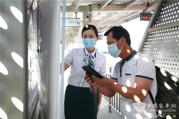 “请您配合测量体温。”乘客刚走近武昌火车站东广场BRT站台,就会在入口处看到一个单独的体温测量点,旁边还竖有一块很大的乘车指示牌。“这个站点比较复杂,可以乘坐BRT1路,也可以搭乘公交570路、540路、760路。”工作人员边测量体温边向记者解释道,“专门设立体温测量点,不仅可以引导乘客分流,而且可以避免乘客在BRT入闸口扫码时聚集。”