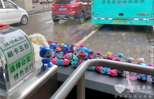 除了简单的装饰,柴师傅也准备了一些哆啦A梦钥匙扣在车上,柴师傅说:“这些钥匙扣是专门送给乘坐公交的小朋友的。”据了解,不到一个月的时间里,柴师傅已经送出了二三百个钥匙扣。