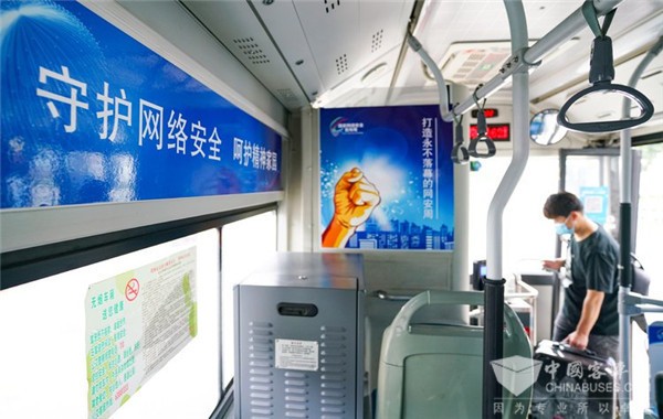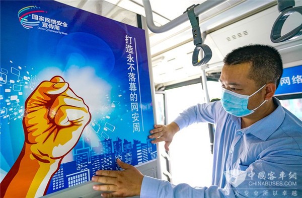 2020年8月23日早上6时,一辆“网安号”主题公车从郑州公交62路文化路东赵发车,公交车内张贴了以蓝色为主色调2020国家网络安全宣传周海报,旨在更好地宣传网络安全知识,让网络安全意识深入人心。