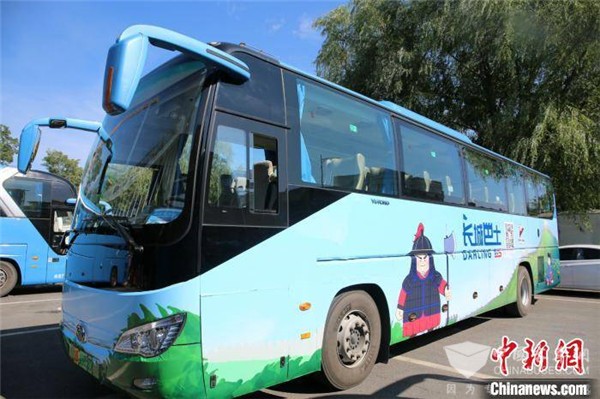 “长城巴士”为新能源电车,节能环保,同时,整车自重低,车内空间较大,共45个座位,皮质座椅更加舒适,可满足游客轻松、舒适的乘坐需求。不仅如此,“长城巴士”在视觉设计上也下足了功夫,车身以八达岭文创“长城礼物”明小兵为主题包覆,让明小兵带领游客奔向“诗和远方”。