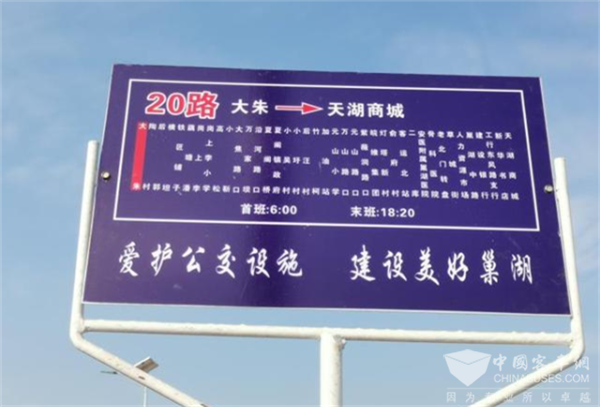 今年6月初,巢湖公交为认真落实巢湖市交通运输局关于客车通建制村工作要求,实现“进得来、出得去、行得通、走得畅”的总体目标,经巢湖市交通运输局总体谋划,决定新开巢湖市“天湖商场”至夏阁镇沿河行政村“大朱村”的公交20路线。线路日发9班次,从大朱村始发,途经夏朱路、巢柘路、巢湖路、东风路、牡丹路至天湖商城站,线路共设39个停靠点。运营服务时间每天6:00至18:20。9月28日线路开通当天,村民们笑逐颜开,纷纷前来乘坐公交,并为这一民生举措点赞。