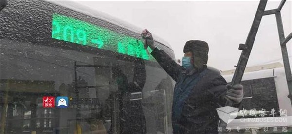 市北巴士供电所于夜间对电车线网进行了巡查,并对线网积雪进行清理,防止线网结冰对电车集电头造成损伤。因降雪较大且道路有结冰现象,突击队员在车辆行驶主干道播撒融雪剂。29日凌晨,各分公司安排技术维修人员对线路的前三个班次车辆进行预热及气压检测,保证了所有路线的头班车准时发出。同时安排了后勤人员跟随头班车,对有陡坡容易出现路面结冰的线路进行查看,了解线路结冰情况。