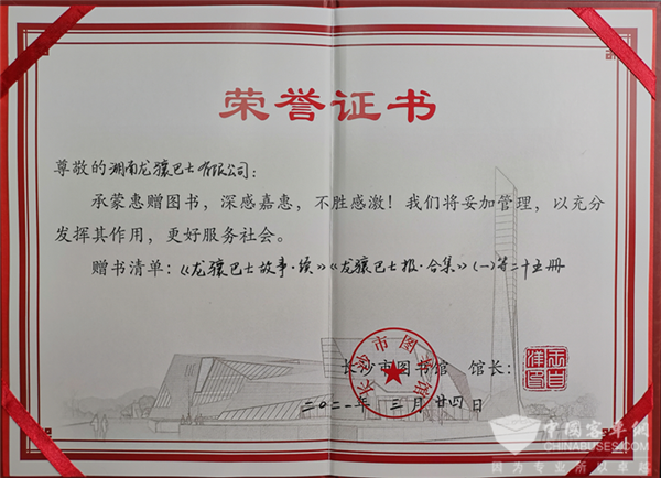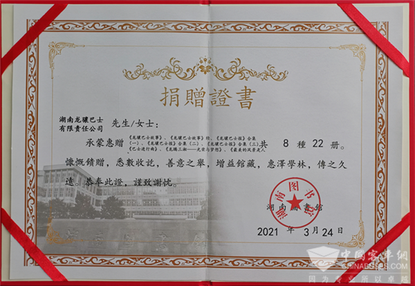 2021年3月,龙骧巴士受邀先后向湖南图书馆、长沙市图书馆、长沙市档案馆捐赠了公司的企业文化建设成果。