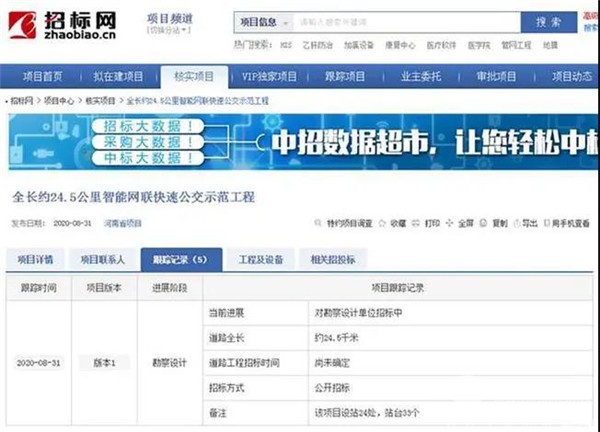 早在2020年8月,郑州市智能网联快速公交示范工程便进行了招标工作,从招标的信息显示。主要建设内容包括:L3级智能网联系统和快速公交系统,其中L3级智能网联系统建设内容包括车路协同盲区监测系统、信号优先系统、智能网联车辆升级、智能网联云控平台、车路协同系统、智能调度系统、自动充电系统、信息安全防护系统等。快速公交系统建设内容主要包括道路工程、车站工程、设备工程、交通工程、交警指挥中心扩容等。范围内的快速公交站台工程、道路交通工程、给排水工程、供配电工程、智能网联车辆工程、公交智能化系统工程、智能网联云控平台等。