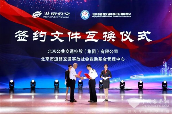 随后,集团公司与市交管局所属的道路交通事故社会救助基金管理中心举行了合作签约文件互换仪式。在与会人员的共同见证下,集团公司副总经理常江与北京市公安交通管理局副局长张克军交换了合作框架协议,同时,也宣告集团公司正式加入北京市警医联动平台。双方将在道路救援、伤者就医等多方面强化合作,共筑平安交通品牌。依托道路交通事故救助基金和警医联动平台,集团公司将极大地拓宽就医绿色通道,从而为公交车交通事故中的伤者提供更加及时、快速、有效的救治。