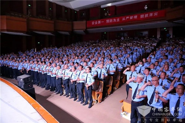 大会最后,北京市劳动模范、“金方向盘奖”获奖驾驶员刘淑芳以及另外两名“金方向盘奖”获奖代表邢海龙、张光明上台带领全体获奖驾驶员庄严宣誓,以战必用我,用我必胜的坚定信念迎接建党100周年庆典的到来,全力以赴做好庆祝活动交通服务保障工作。