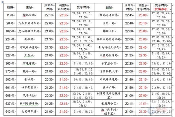 末班车时间进行季节性延时。
