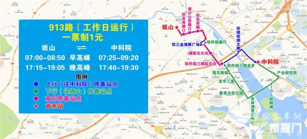 (一)线路走向:坂山始发,行至锦亭北路诚毅东路口,改经锦亭北路、集美大道至中科院。返程线路走向不变。